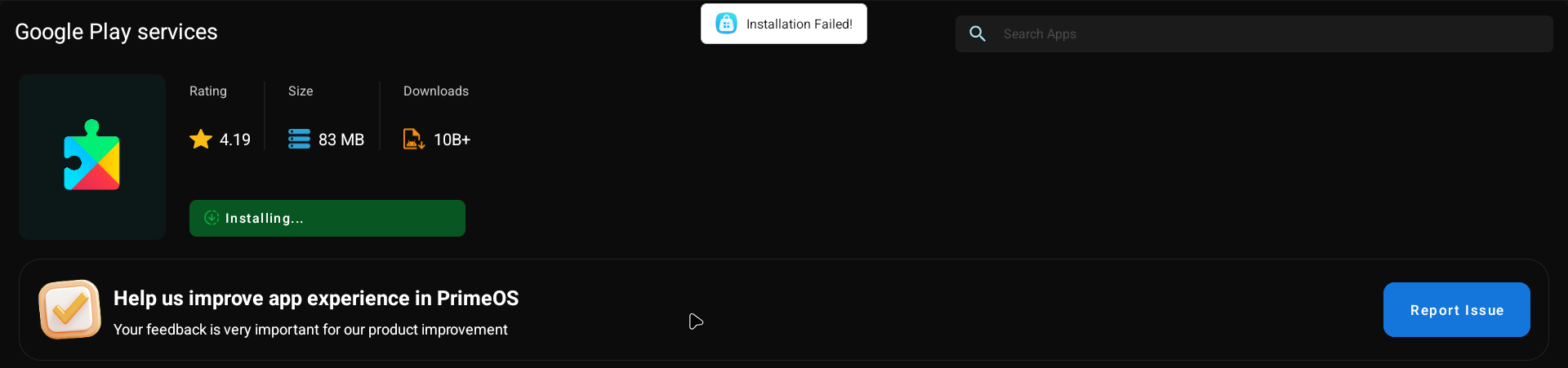 when trying to update google play services from the PRIME OS app store, it is says installation failed. it is also showing up as microg services.