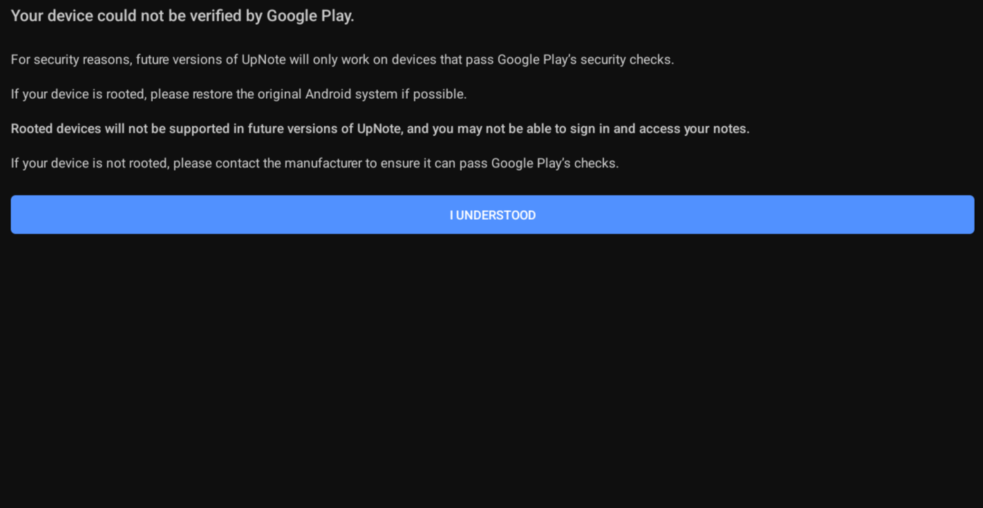 Unable to login UpNote. it’s saying “firebase app check token is invalid”